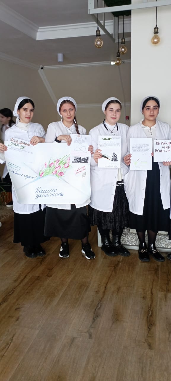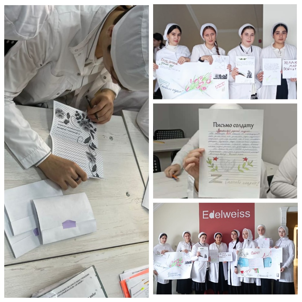 05.12.2022Уважаемы друзья в рамках Всероссийской акции "Письмо солдату" наши студенты изъявили желание не оставаться в стороне в то время когда, их братья и отцы сражаются на поле боя. Студенты написали письма где выражают свои беспокойства за них, где они желают им скорейшей победы. Во все времена чеченцы славились своим воинским духом который не сломать современным реалиям.