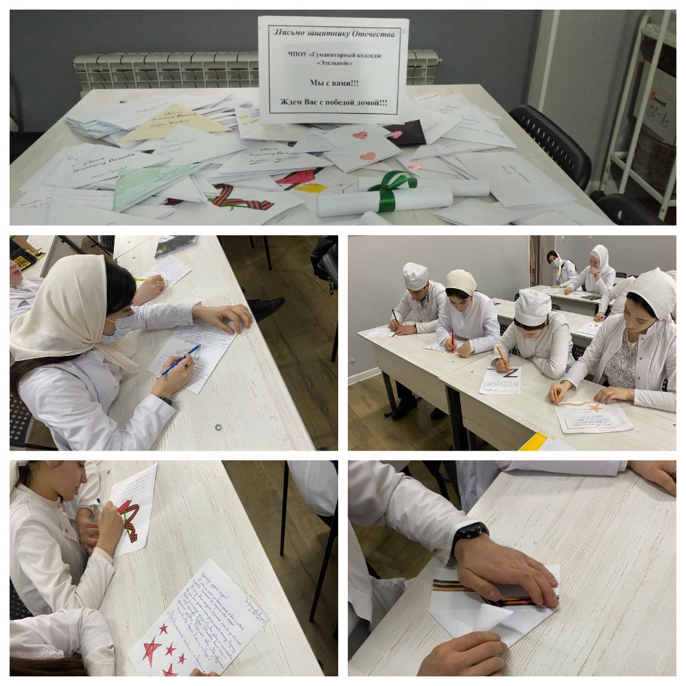 Педагогический коллектив и студенты колледжа написали письма – поздравления нашим защитникам, землякам и родственникам, которые участвуют в СВО со словами поддержки, добрыми пожеланиями и благодарностью за выполнение патриотического долга.