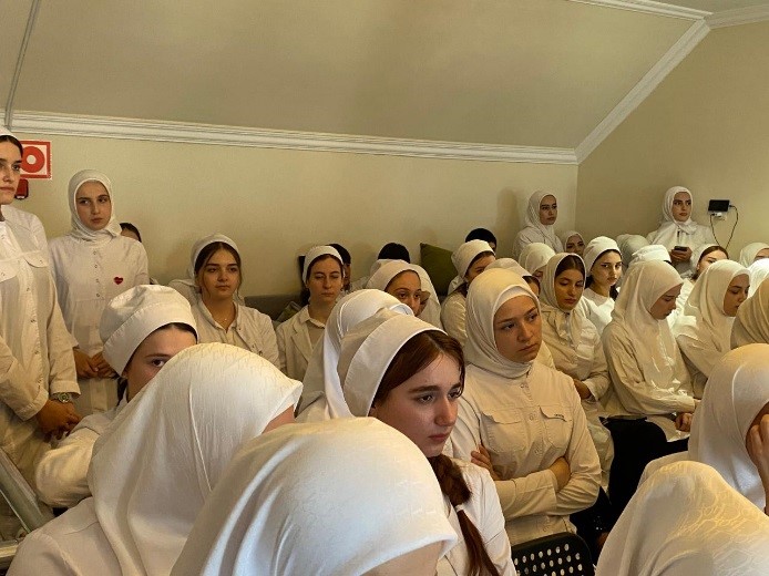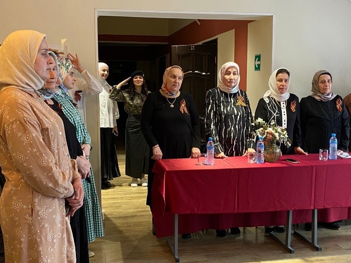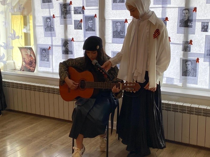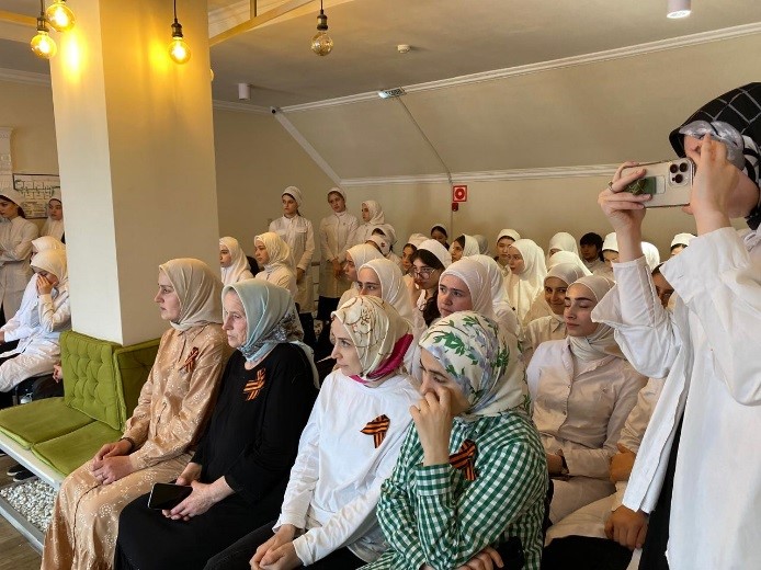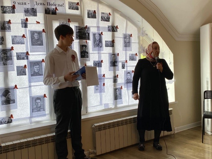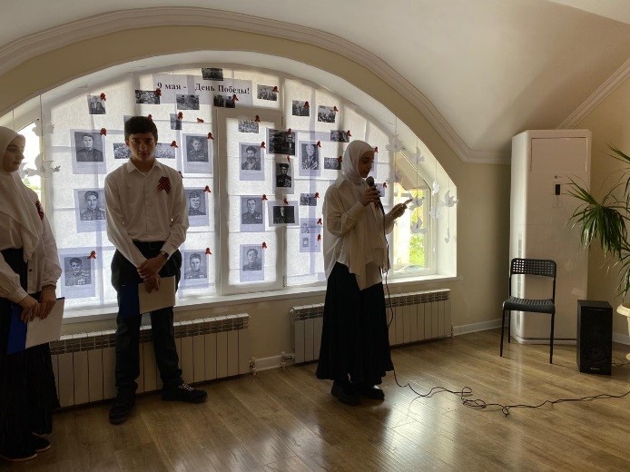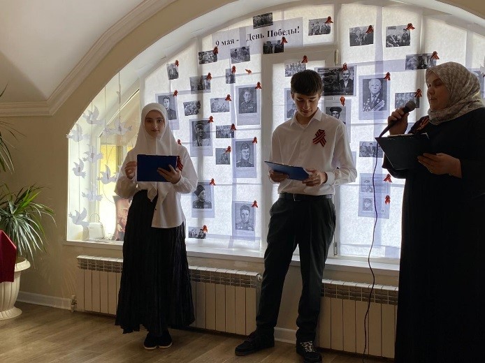Была представлена концертная программа. Студенты гр. 23-СД(9)-3 Абдулаева Айдима исполнила песню о солдате, Хаджимурадова Асет и Умажева Марха трогательно прочитали стихи К. Симонова «Жди меня» и И. Эренбурга «В мае 1945 года».
