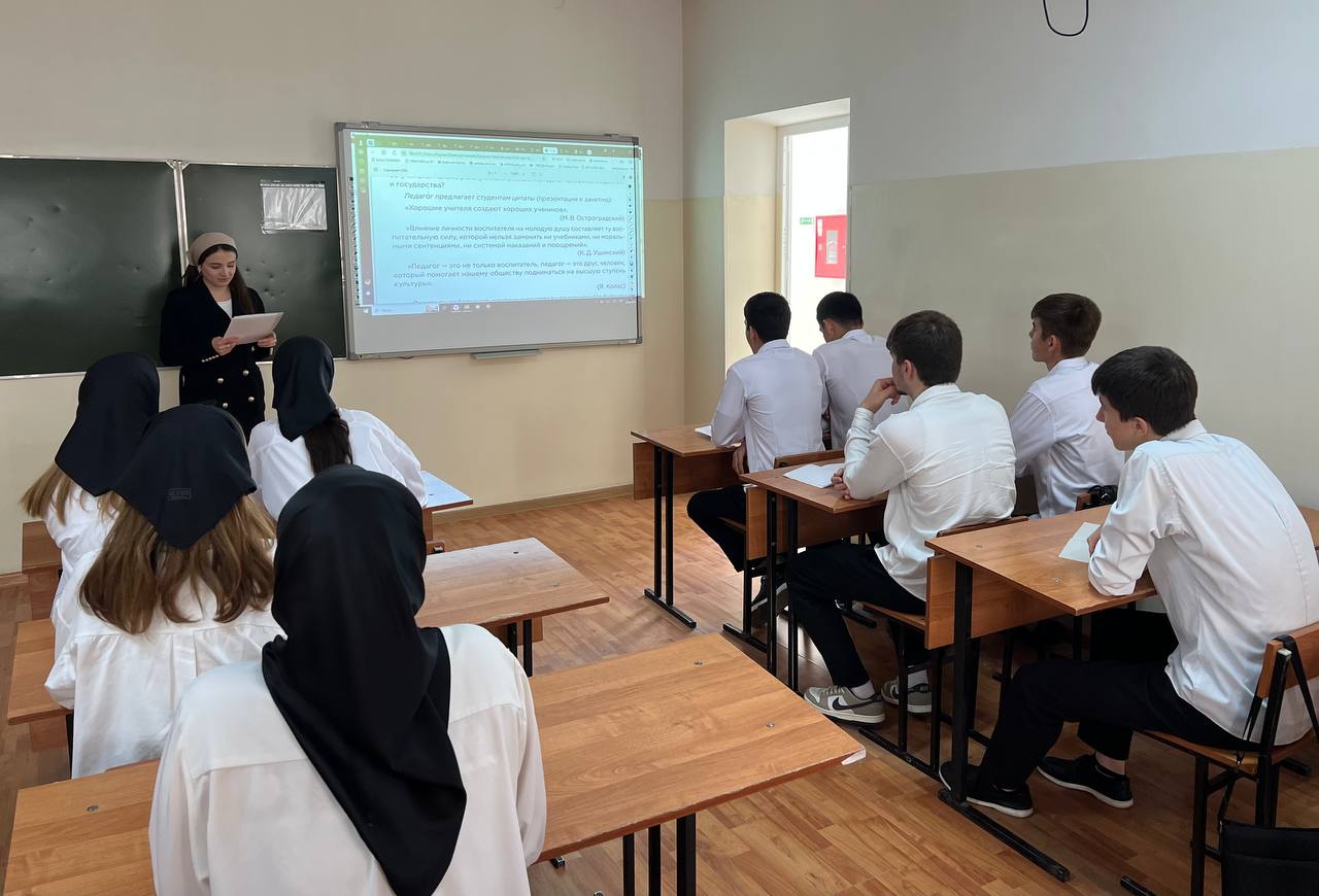 Еженедельные «Разговоры о важном» прошли в Чеченском социально-правовом колледже. На этой неделе темой внеурочного занятия стала «День учителя»