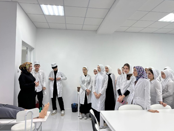 Студенты в сопровождении преподавателя специальных дисциплин Джанхотовой Х.У. посетили Медицинский колледж при Медицинском институте Чеченского государственного университета имени А.А. Кадырова.