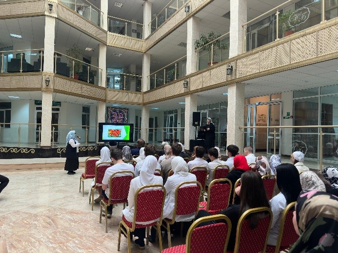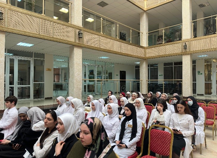 В информационной части Хусейн Умарович рассказал присутствующим что такое рак, о причинах возникновения, факторах риска развития болезни и опасности, которую представляют раковые клетки для организма человека, какие симптомы характерны для опухолей различных локализаций, возможностях профилактики онкологических заболеваний и борьбы с ними, познакомил со статистикой онкологических заболеваний в Чеченской Республике.