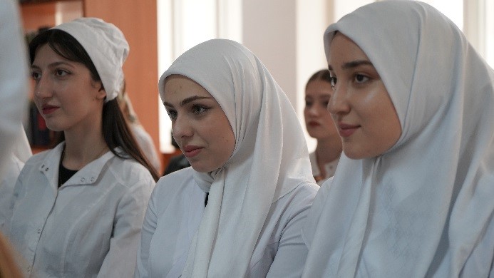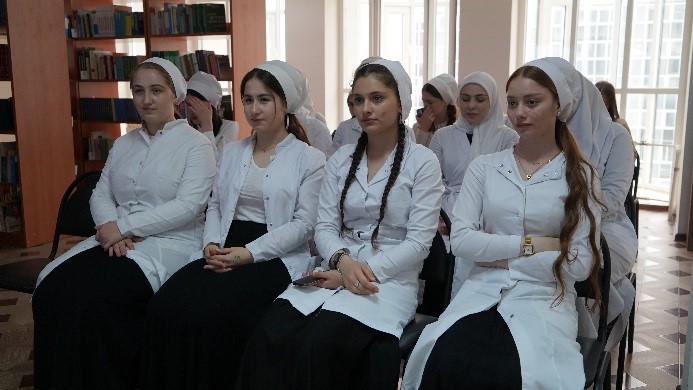 На встрече присутствовали преподаватели и студенты Частного профессионального образовательного учреждения «Гуманитарный колледж «Эдельвейс» и Чеченского базового медицинского колледжа.