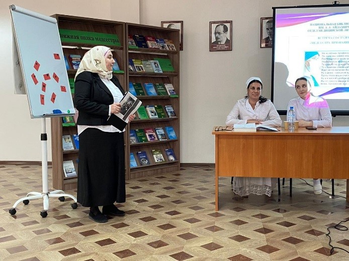 Ведущий библиотекарь Айза Махматова познакомила участников с биографией Флоренс Найтингейл и с её вкладом в развитие сестринского дела в мире.