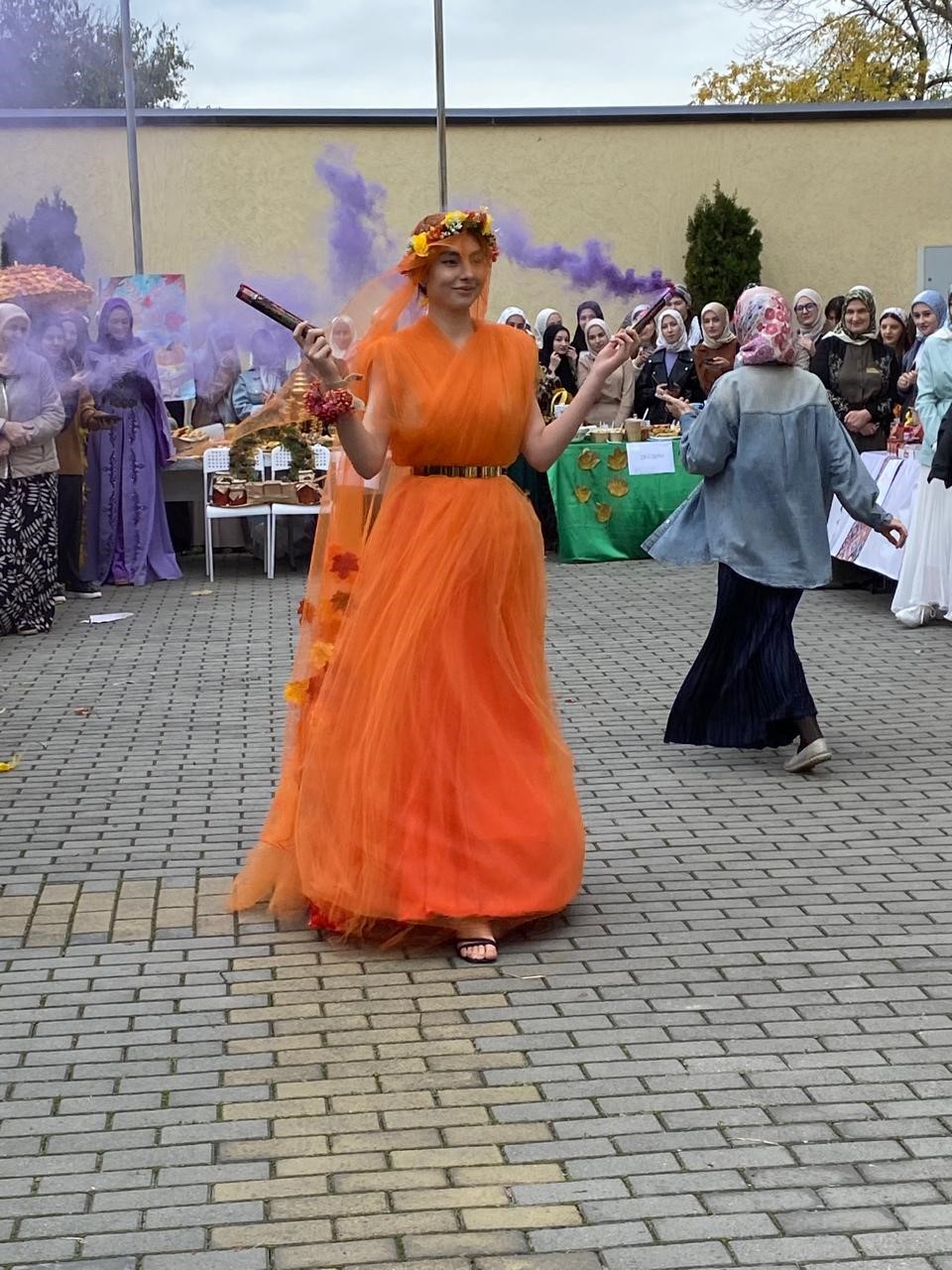Наш осенний бал начался с праздничного открытия веселых скоморох: «Внимание, внимание, открывается «Осенний бал – 2025», торопись честной народ тебя Ярмарка зовет». В ярмарке приняли участие обучающиеся 1-3 курсов и их родители.
