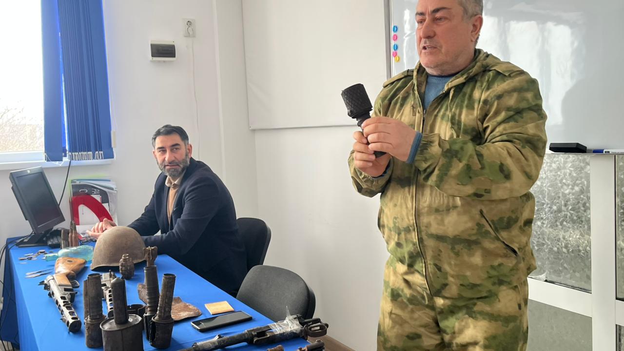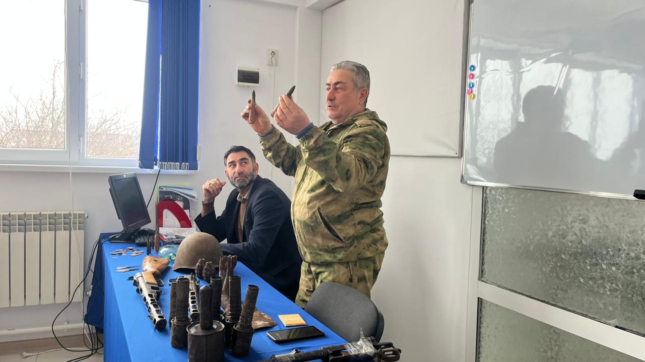 Заведующий отделом детского юношеского центра туризма и краеведения, командир поискового движения Наурского района Умаев И.Х., Глава Наурского городского поселения Ибаков А.М. рассказали студентам о деятельности поискового движения и отряда, чем занимаются активисты поискового движения, а именно: выезжают на поля сражений, работают в архивах, помогают родственникам узнать о судьбе своих близких, ухаживают за воинскими захоронениями, занимаютя патриотическим воспитанием, проводят выставки по итогам поисковых работ. Самым интересным моментом данной встречи явилась мини- выставка находок с экспедиций. У студентов была уникальная возможность не только увидеть своими глазами находки, но и сфотографироваться- напрямую прикоснуться к истории!
