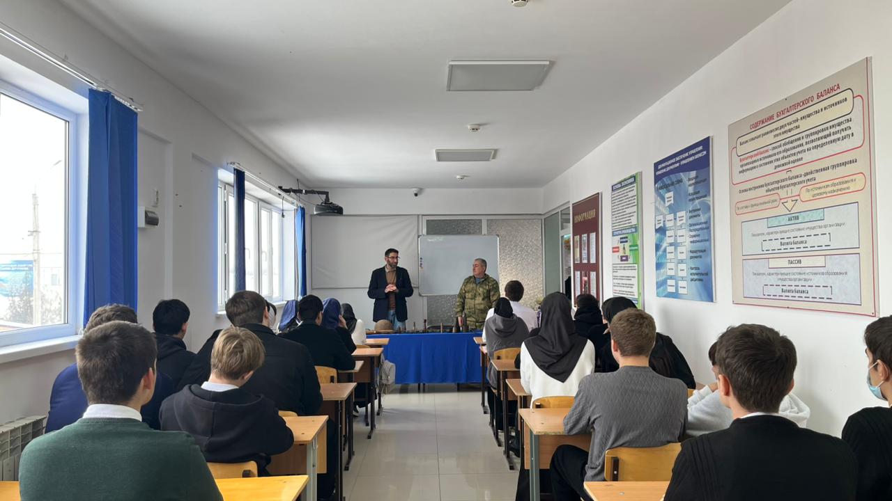 27.01.2026 г. Проведена встреча с членами поискового отряда « Последний рубеж», « Русские витязи» Заведующий отделом детского юношеского центра туризма и краеведения, командир поискового движения Наурского района Умаев И.Х., Глава Наурского городского поселения Ибаков А.М. рассказали студентам о деятельности поискового движения и отряда.